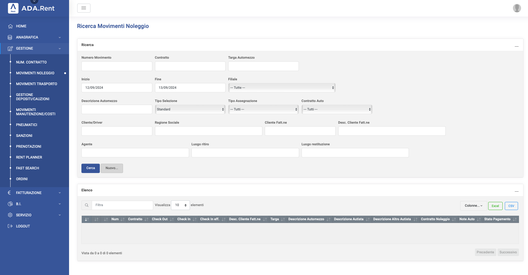 Gestione dell’autonoleggio